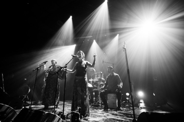 Ils et elles sont cinq, femmes et hommes, instrumentistes et chanteur.euse.s, en quête de ces heures après lesquelles on court, d’une musique à inventer, d’une langue pas tout à fait perdue.